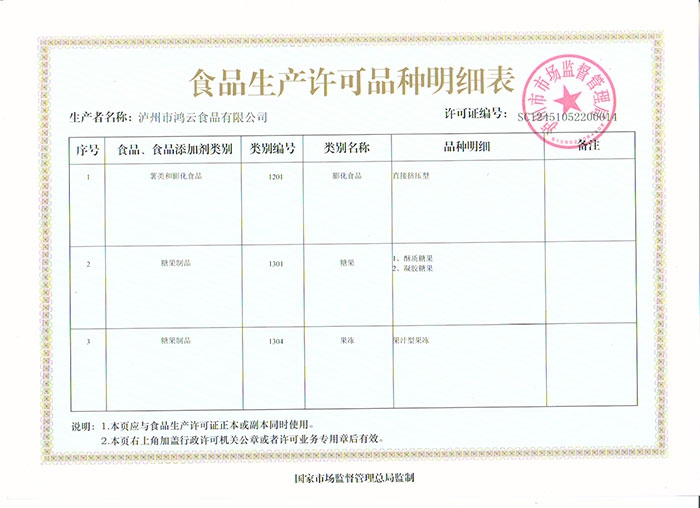 食品生產(chǎn)許可證明細表